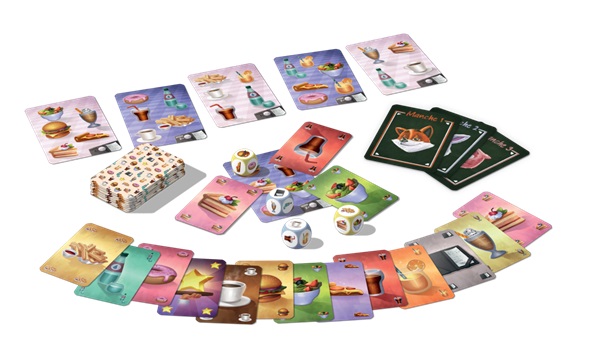 Go ! Vous n’avez que trois minutes pour servir plats et boissons et pour porter l’addition à table ! Burgers, frites, donuts… Complétez la commande aussi vite que possible. Sous la pression du temps, utilisez au mieux vos dés et les cartes que vous avez en main, et zou : servez aux clients ! Quelle carte convient le mieux à quel endroit ? Tous les clients sont-ils vraiment satisfaits ? Vous devez vous mettre d’accord rapidement afin de préparer les commandes… en moins de trois minutes !