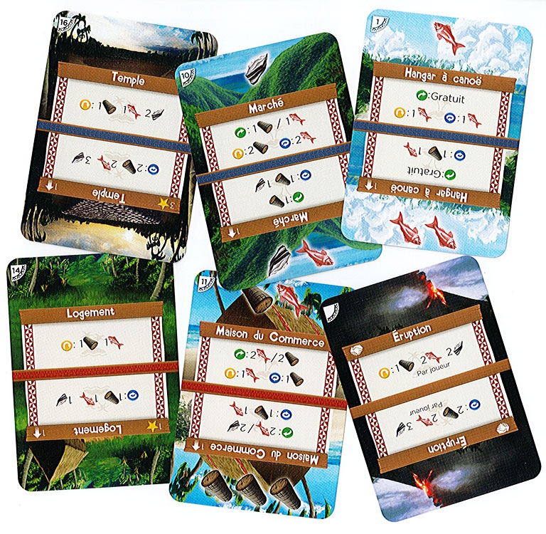 Dans Palm Island, vous manipulez les 17 cartes dans votre main afin de produire des ressources, que vous dépenserez pour payer les améliorations et construire de nouveaux bâtiments tels que les marchés, pour la production, ou les temples, pour les points de victoire. Optimisez vos ressources et l’expansion de votre village pour remporter la partie !