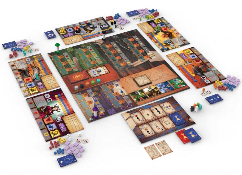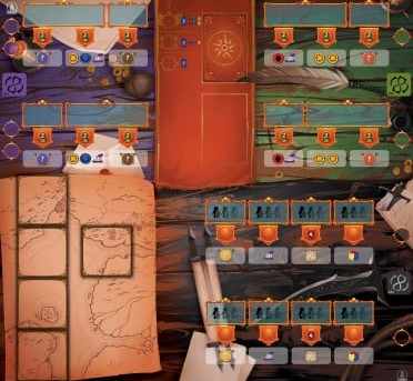 Chaque zone d’Action est composée de 2 lignes d’Actions, certaines ayant coût et permettant de récupérer des Ressources. Une fois le sablier écoulé, il passe d’une ligne d’Actions à l’Autre, libérant certains Ouvriers et permettant à d’autres d’accomplir l’Action. Vous pouvez aussi choisir une Action non chronométrée, qui ne dépend pas des Sabliers et ne requiert pas d’ouvrier.
