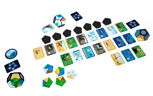 Durant les 12 tours que dure la partie, positionnez judicieusement vos tuiles continents pour former les environnements propices à l’apparition de la vie animale. Gagnez des points en remplissant votre objectif « milieu naturel », et en peuplant votre planète avec le plus d’animaux possible.
