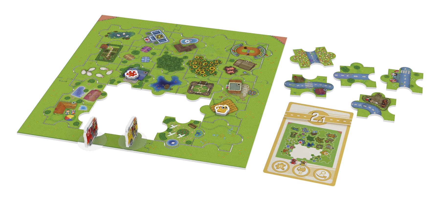 Et pour cela, toutes les pièces restantes devront être utilisées. Chaque camions devra emprunter sa propre route sans gêner les autres interventions ! La partie prendra fin lorsque les chemins seront rejoints. Il suffira alors de regarder la solution à l’arrière de la carte Challenge et passer aux Challenges suivants !