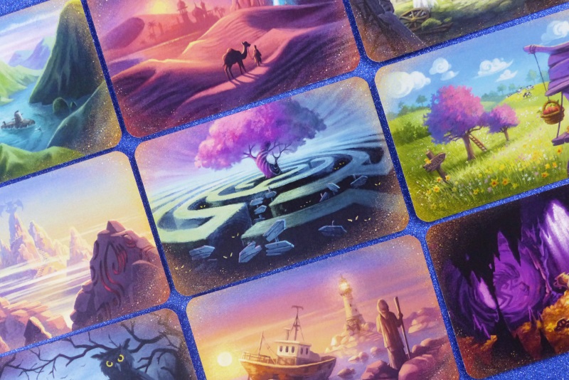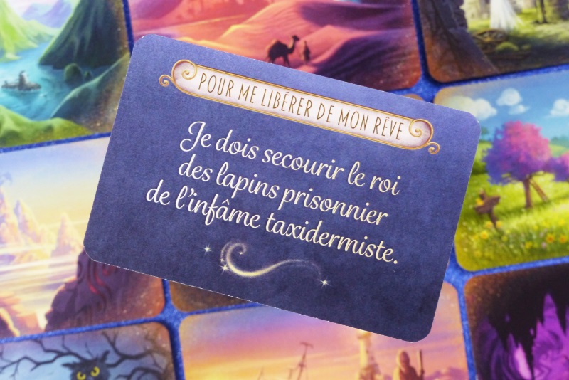 Contenu: 5 cartes Chapitre, 5 cartes Rêvelune, 12 cartes Rêve, 16 cartes Rêveur, 16 cartes Guide, 48 cartes Inspiration, 12 cartes Emprise, 1 règle du jeu.