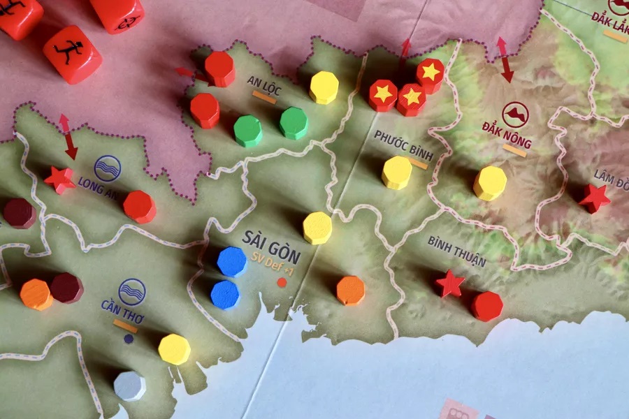Saigon 75 est un jeu de stratégie palpitant qui plonge les joueurs au cœur de l’histoire du Viêt Nam pendant la guerre. Dans ce jeu rapide et tactique, les forces « communistes » du Nord Viêt Nam et les Viet Cong se retrouvent face aux forces « libérales » du Sud Viêt Nam, et la bataille pour le contrôle de la capitale, Saïgon, s’annonce féroce. Alors que les forces du Nord n’auront qu’un seul but prendre Saigon avant le printemps 1975, soit 8 tours de jeu. Celles du Sud devront résister coûte que coûte.