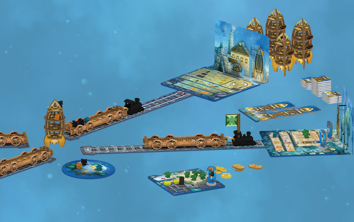 Le matériel en 3D et les kirigami vont permettre de former une petite ville pour vos meeples.