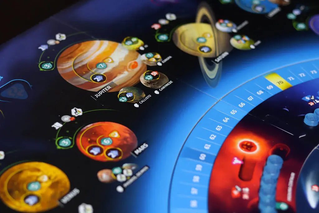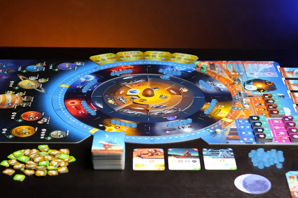 Vous utiliserez également plus de 200 cartes pour faciliter vos efforts ou orienter vos recherches dans une direction particulière afin d’obtenir des bonus et des récompenses supplémentaires. Chaque carte a des effets et des illustrations uniques et représente des technologies, des projets et des découvertes de la vie réelle (comme l’ISS, le Grand collisionneur de hadrons, le rover Persévérance, la sonde Voyager et bien d’autres).