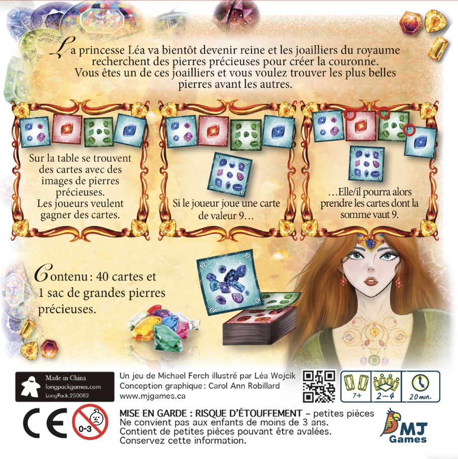 Contenu: 40 cartes, 1 sac de grandes pierres précieuses.