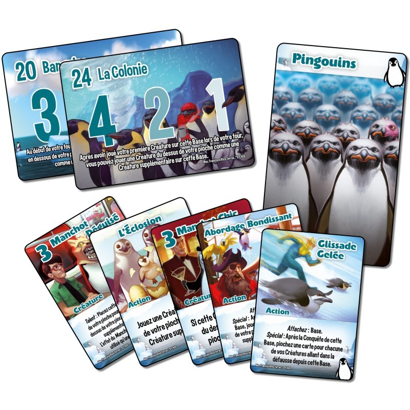 Contenu: 20 cartes factions pingouins, 2 cartes base pingouins, 1 séparateur de faction/carte titan.