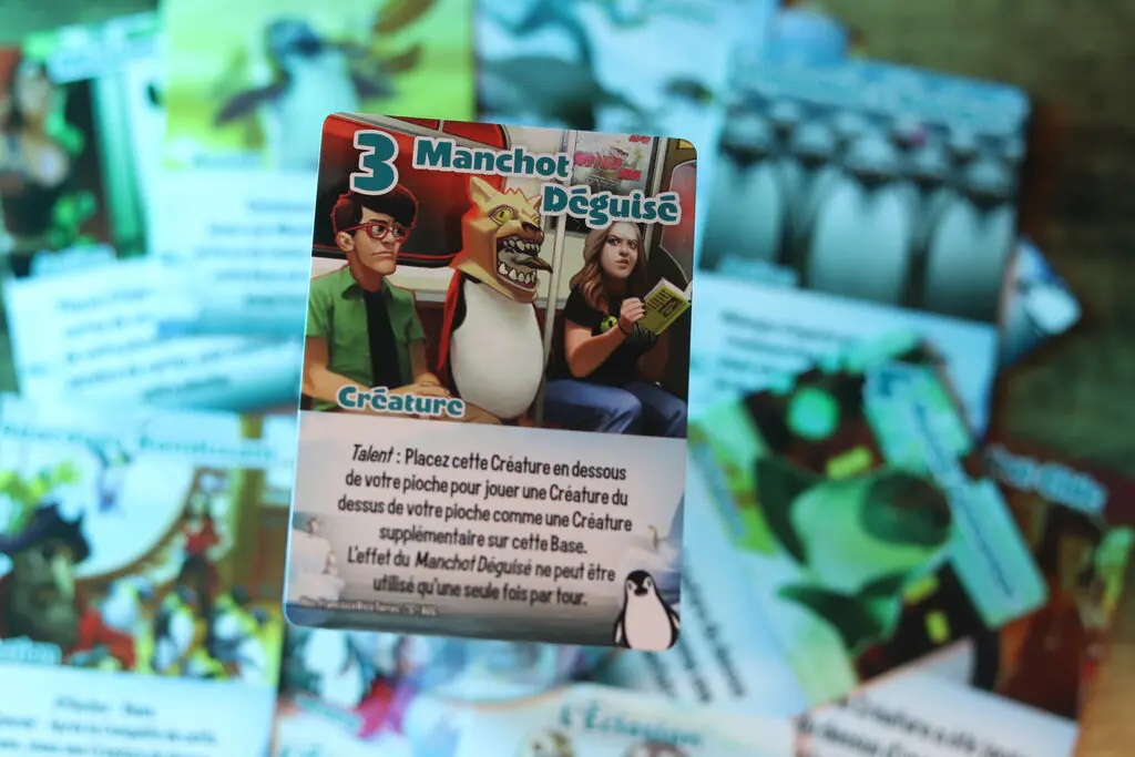 Les Pingouins sont les champions de la pioche : vous pourrez manipuler cette dernière avec beaucoup de liberté, en y glissant vos Créatures pour mieux les y retrouver ensuite. Bon, en vrai, vous ne saurez pas toujours sur qui vous allez tomber, mais vous tomberez fatalement sur quelqu’un et c’est bien là le plus important. Concrètement, de nombreuses cartes vous invitent à piocher des cartes jusqu’à ce que vous trouviez l’une de vos créatures, vous permettant de ne jamais manquer de créatures à envoyer sur les bases. Attention à la déferlante de Pingouins !
