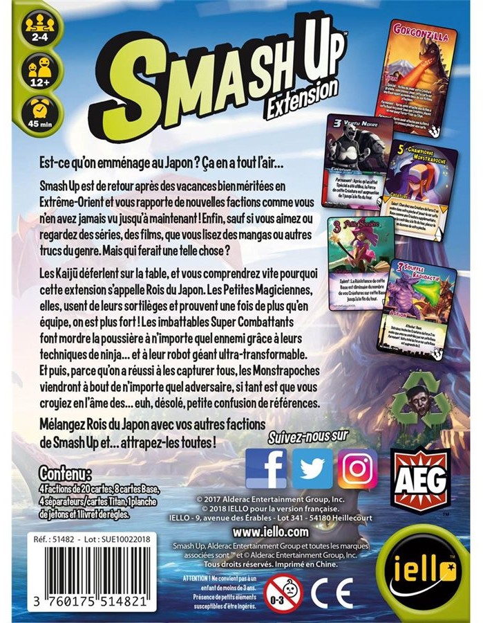 Smash Up est de retour après des vacances bien méritées en Extrême-Orient et vous rapporte de nouvelles factions comme vous n’en avez jamais vu jusqu’à maintenant ! Enfin, sauf si vous aimez ou regardez des séries, des films, que vous lisez des mangas ou autres trucs du genre. Mais qui ferait une telle chose ?
