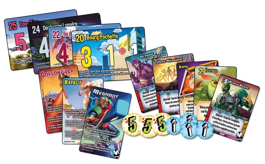 Les Kaiju déferlent sur la table, et vous comprendrez vite pourquoi cette extension s’appelle Rois du Japon. Les Petites Magiciennes, elles, usent de leurs sortilèges et prouvent une fois de plus qu’en équipe, on est plus fort ! Les imbattables Super Combattants font mordre la poussière à n’importe quel ennemi grâce à leurs techniques de ninja… et à leur robot géant ultra-transformable.