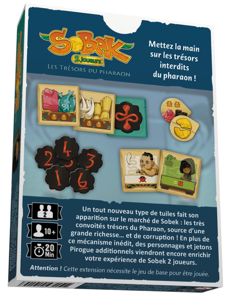 En plus de ce mécanisme inédit, des personnages et jetons Pirogue additionnels viendront encore enrichir votre expérience de Sobek 2 joueurs.