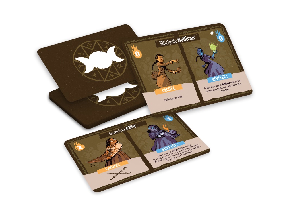 Dans ce jeu solo, mécaniquement proche de Résistance!, vous incarnez des sorcières pendant la période historique de Salem.