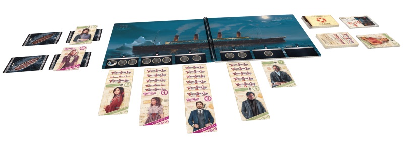 – soit organiser l’évacuation en piochant des passagers pour en jouer un à la suite d’une file ou sur un canot. S’il échoue dans l’organisation de l’évacuation, on tourne une page du livret et le naufrage avance d’un cran, accélérant ainsi la fin de la partie.