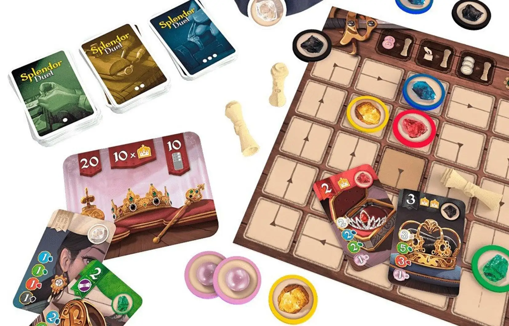 Splendor Duel est un tout nouveau jeu 2-joueurs avec des mécaniques uniques et innovatrices créé par Marc André et Bruno Cathala. Serez-vous celui ou celle à remporter la couronne?
