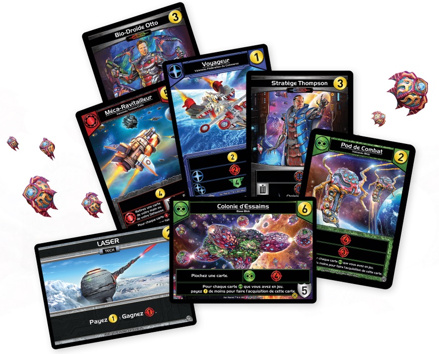 - Réquisition : de nouveaux vaisseaux et bases dont l’acquisition coûte 1 métier de moins pour chaque carte de leur faction jouée au cours du tour !