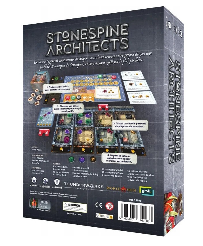 Stonespine Architects est un jeu de drafting de cartes dans lequel 1 à 5 joueurs s’affrontent pour construire le labyrinthe le plus dangereux. Les joueurs piochent et jouent simultanément des cartes pour agrandir leurs donjons, une chambre à la fois. Suivez un plan unique et une variété de défis à relever pour marquer des points.