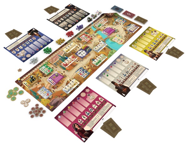 À votre tour, vous déplacez l’un des 3 meeples assistants dans le Grand Bazar et effectuez l’action à l’endroit où il se trouve. Les actions comprennent l’achat, le commerce et le lancement de dés pour la laine, le poil de chameau, la soie, la teinture végétale et la teinture carmin. Chaque assistant a un rayon d’action limité, mais en planifiant bien, vous pouvez mettre en place une série d’actions rapides et efficaces qui vous permettront d’obtenir tous les matériaux dont vous avez besoin pour vos commissions avant qu’un autre joueur n’ait terminé les siennes. À la fin de chaque tour, si vous avez les matériaux nécessaires, vous pouvez compléter 1 commission que vous avez en main.