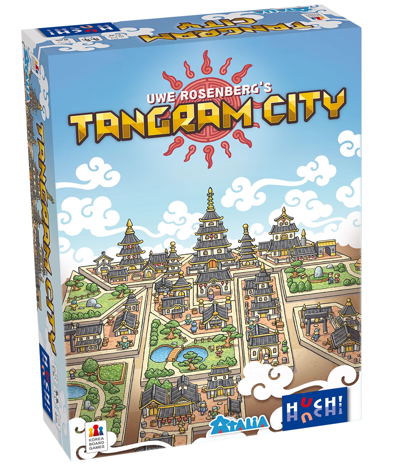 Dans Tangram City, vous placez des tuiles de ville sur votre plateau en utilisant des informations secrètes sur la tuile de ville qui apparaîtra ensuite. Les tuiles ville étant recto-verso, planifiez votre agencement dans un objectif d’harmonie et de forme rectangulaire. A la fin d’un tour, vous recevez des points pour le plus grand rectangle du plateau, et à la fin de la partie, des points bonus pour l’harmonie entre les royaumes.