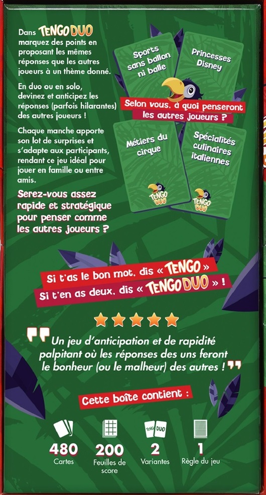 Tengo Duo est un jeu qui fait appel aux références communes et lieux communs mais aussi au vécu et à l’expérience de vie de chacun.