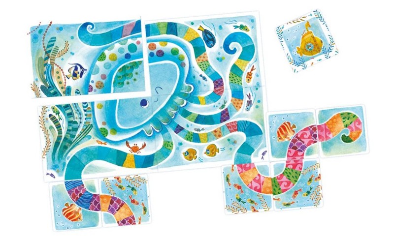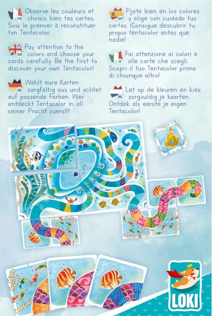 Observe les différentes couleurs et choisis les bonnes cartes pour reconstituer le tentacule. Le premier joueur qui complète son tentacule avec 5 cartes ayant la même couleur commune remporte la partie.