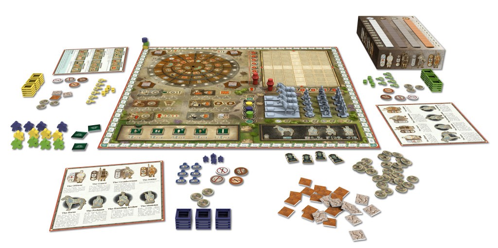 Dans Terracotta Army, vous représentez des artisans et des artistes talentueux travaillant à la construction du merveilleux assemblage de statues. Pendant le jeu, vous collectez des ressources, améliorez vos ouvriers et recherchez les faveurs des conseillers de l’Empereur. Votre objectif est de jouer un rôle crucial dans le processus de création de l’armée de terre cuite, et votre succès se mesure en points de victoire (PV). Pendant le jeu, vous et vos camarades construisez l’armée ensemble, mais après la fin du cinquième tour du jeu, un seul d’entre vous – celui avec le plus de points – sera le vainqueur.