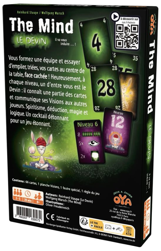 The Mind: Le Devin reprend les mêmes principes que The Mind, les joueurs essayant de coopérer sans communiquer pour maîtriser plusieurs niveaux de jeu de cartes.