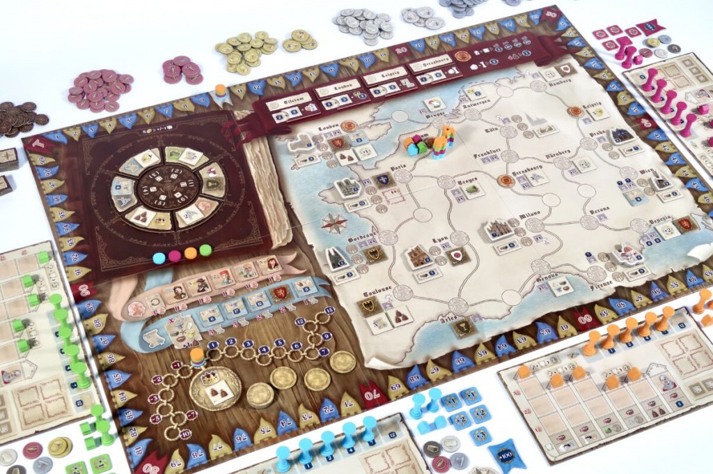 Vous endossez le rôle de riches marchands en quête de fortune, d’influence et de reconnaissance! Cheminant d’une ville à l’autre sur le vieux continent, vous établissez des maisons de commerce et contribuez à la construction de grandes cathédrales. Vous accueillez des nobles influents dans vos maisons afin de bénéficier de leurs faveurs. Vous signez des contrats très profitables et collectez les ressources pour les remplir. Enfin, vous ne manquez pas de participer aux foires, qui vous apportent récompenses et renommée. Êtes vous prêt à devenir le plus grand marchant de la Renaissance?