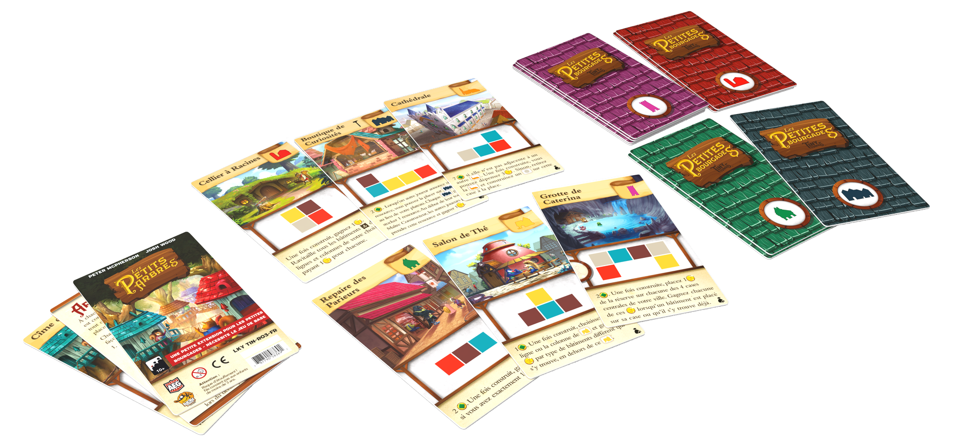 Contenu: Fortune: livret de règles, 6 plateaux Coffre, 30 pièces en bois, 10 cubes Ressource, 12 cartes, bâtiment, 10 cartes Monument, 1 bloc Score, petits Arbres : 1 carte de présentation, 1 carte de règles, 6 Arbres, 6 Graines, 1 carte Monument.