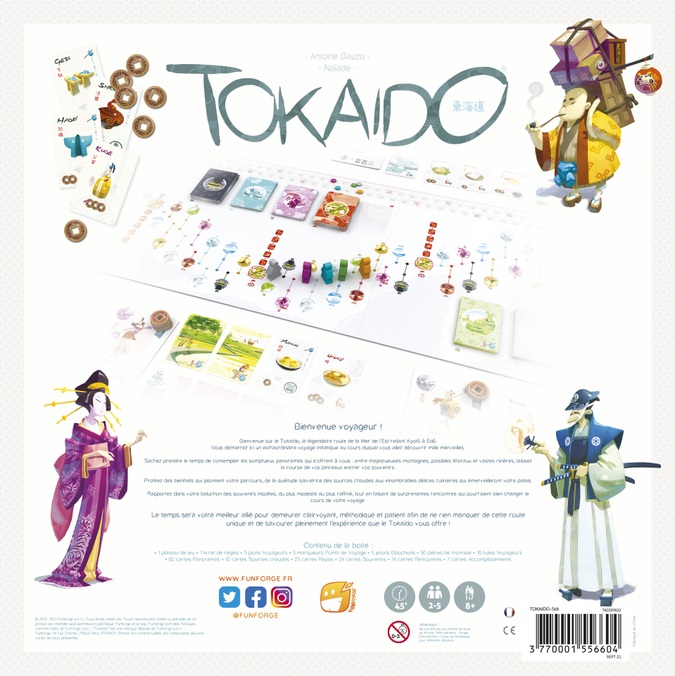 Dans Tokaido, les joueurs sont des voyageurs parcourant la route de la mer de l’est en quête de découverte et de connaissances.