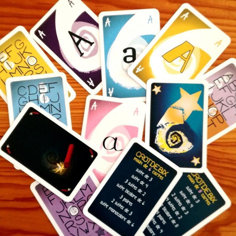 Une boite de 12 jeux de cartes pour des jeux de lettres, mots et phrases : Un univers de jeux, un pont entre le réel des lettres et l’imaginaire vers lequel elles nous emmènent !