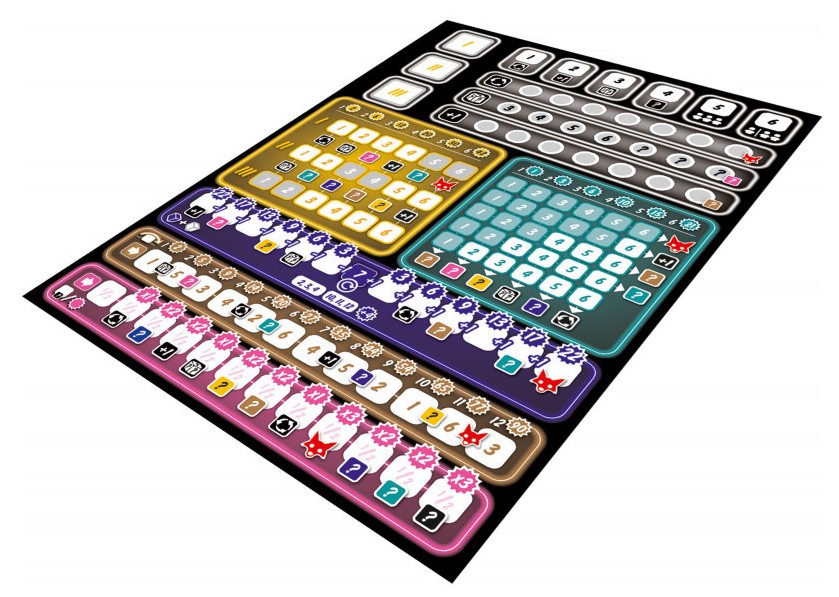 Votre objectif: choisissez des dés, puis placez les numéros dans la zone colorée correspondante, rassemblez des opportunités délicates de marquer en chaîne et accumulez les points. Les dés que vous n’utilisez pas sont aussi importants que les autres, car chaque dé plus petit que celui choisi peut être utilisé par les autres joueurs, gardant tout le monde dans le jeu à tout moment.