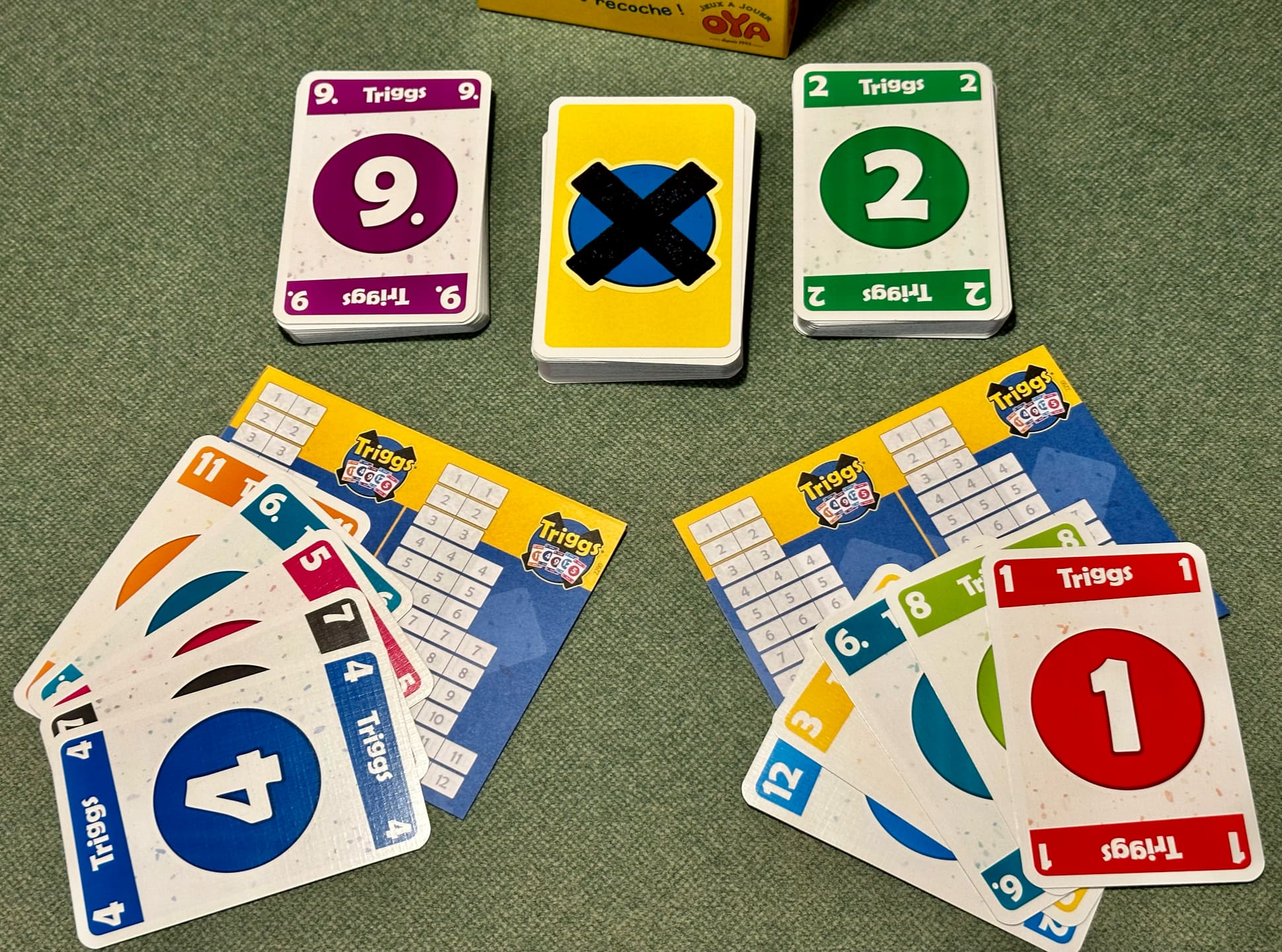 Dans Triggs, les chiffres 1 à 12 apparaissent 2 à 5 fois sur votre feuille de joueur, et vous devez tous les rayer en premier pour gagner.
