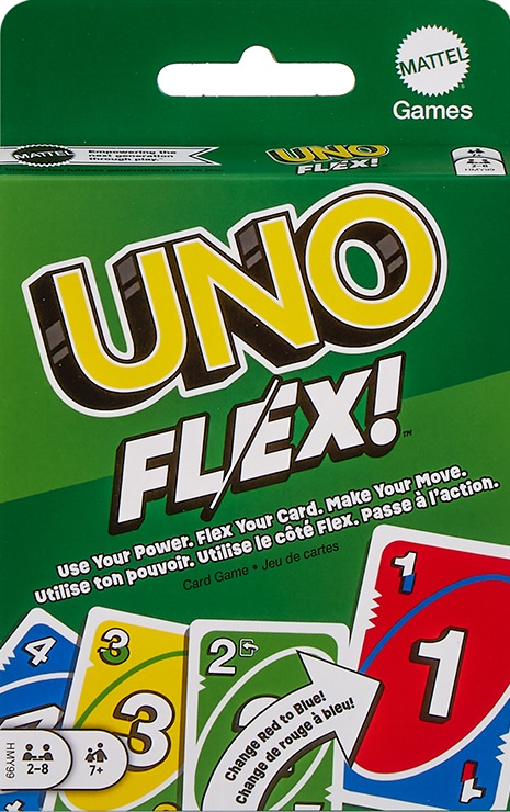 C’est le jeu de cartes que vous connaissez, ainsi que de nouveaux rebondissements captivants – comme un jeu double face et une carte FLIP spéciale – qui donnent un avantage concurrentiel au jeu classique. Les joueurs associent à tour de rôle une carte dans leur main avec la carte actuelle indiquée en haut du jeu, par couleur ou par numéro.