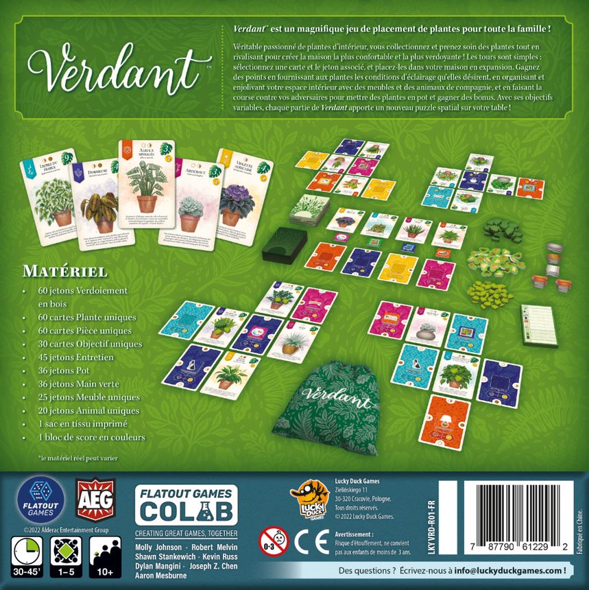 Verdant est un jeu de tableau de cartes pour 1 à 5 joueurs. Vous incarnez un passionné de plantes d’intérieur qui tente de créer l’espace le plus douillet en collectant et en disposant des plantes d’intérieur et d’autres objets dans votre maison. Vous devez positionner vos plantes de manière à ce qu’elles bénéficient des conditions de lumière les plus appropriées et en prendre soin pour créer la collection la plus verdoyante.