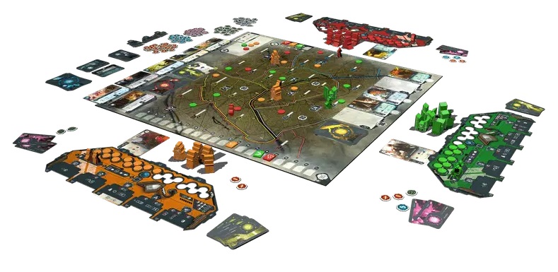 Contenu: 80 pions Influence, 17 figurines Cadres et Agents, 96 pions divers, 60 jetons Eurocrédits, 157 cartes diverses, 1 plateau.