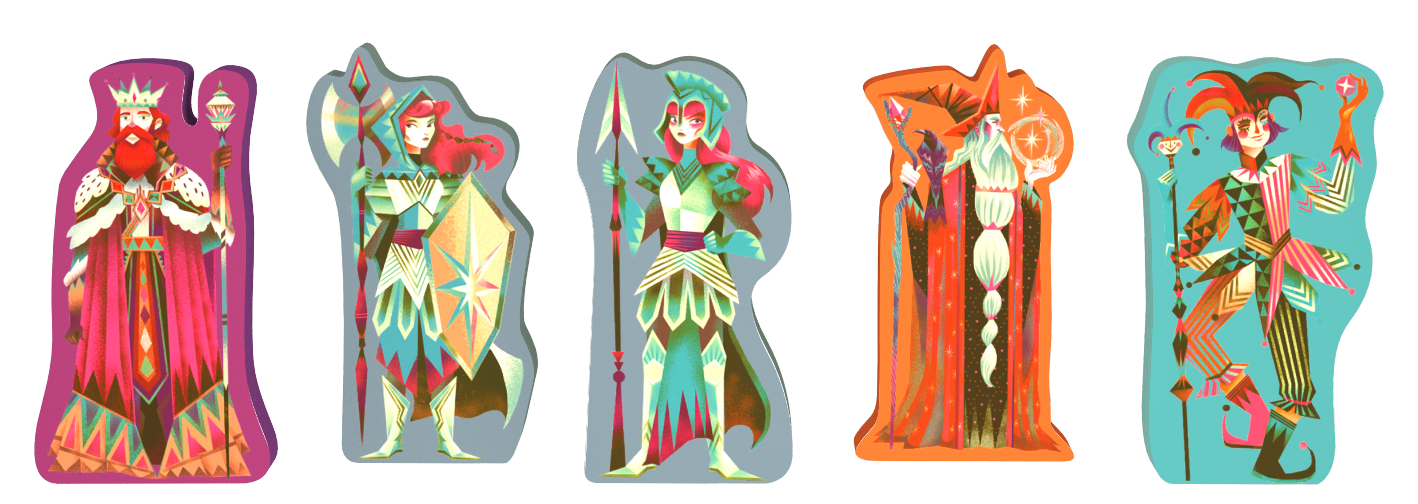 Dans Visite Royale, vous et votre adversaire devez rivaliser de stratégie pour attirer le Roi dans votre Château. Lors de votre tour, jouez une carte de votre main pour déplacer les personnages ou utilisez le pouvoir du Fou et du Sorcier afin d’influer sur la position du Roi et de sa Cour. Vous pourrez ensuite faire progresser la Couronne entre vos deux royaumes, selon la position de chaque personnage.