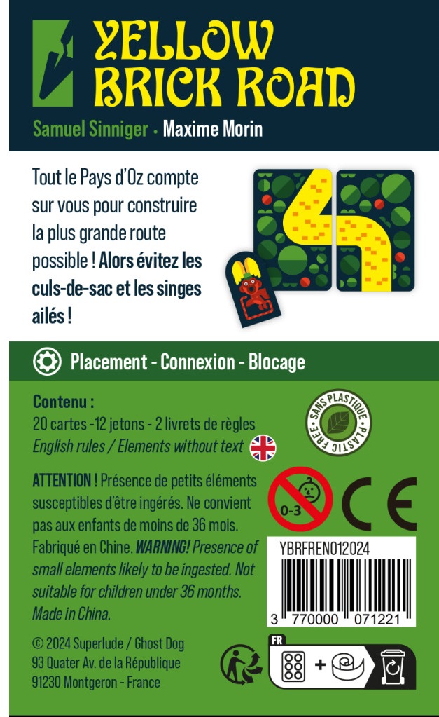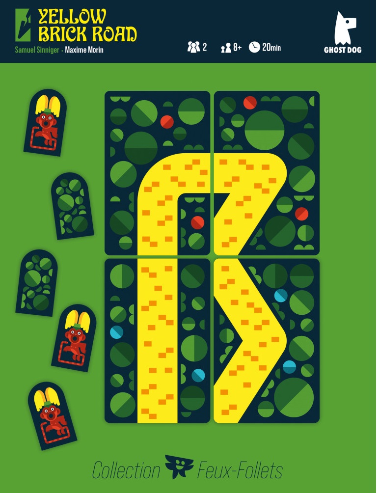 Dans Yellow Brick Road, chaque joueur commence avec une grille imaginaire 3×3 devant lui, et place un jeton singe ailé face cachée au-dessus de chaque colonne et à droite de chaque rangée. Ils piochent chacun une carte du paquet.