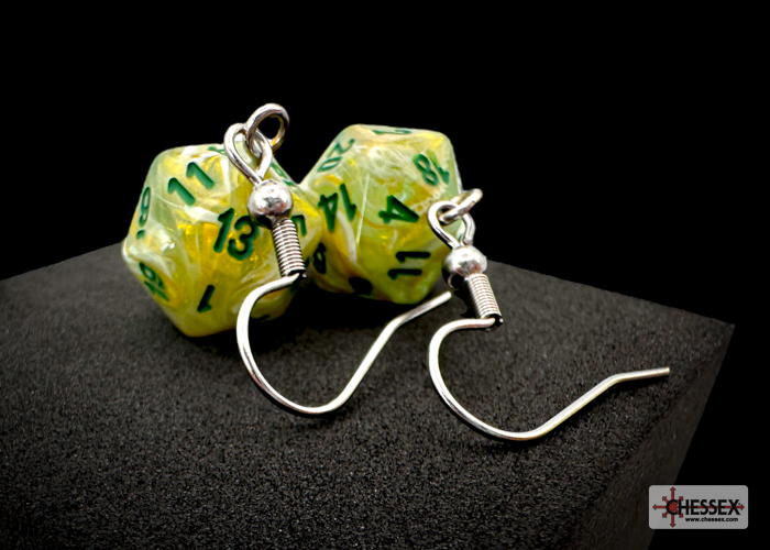 Lab Dice 7 pcs – Translucides: Jaune Fluo à chiffres Blancs avec Dés Bonus